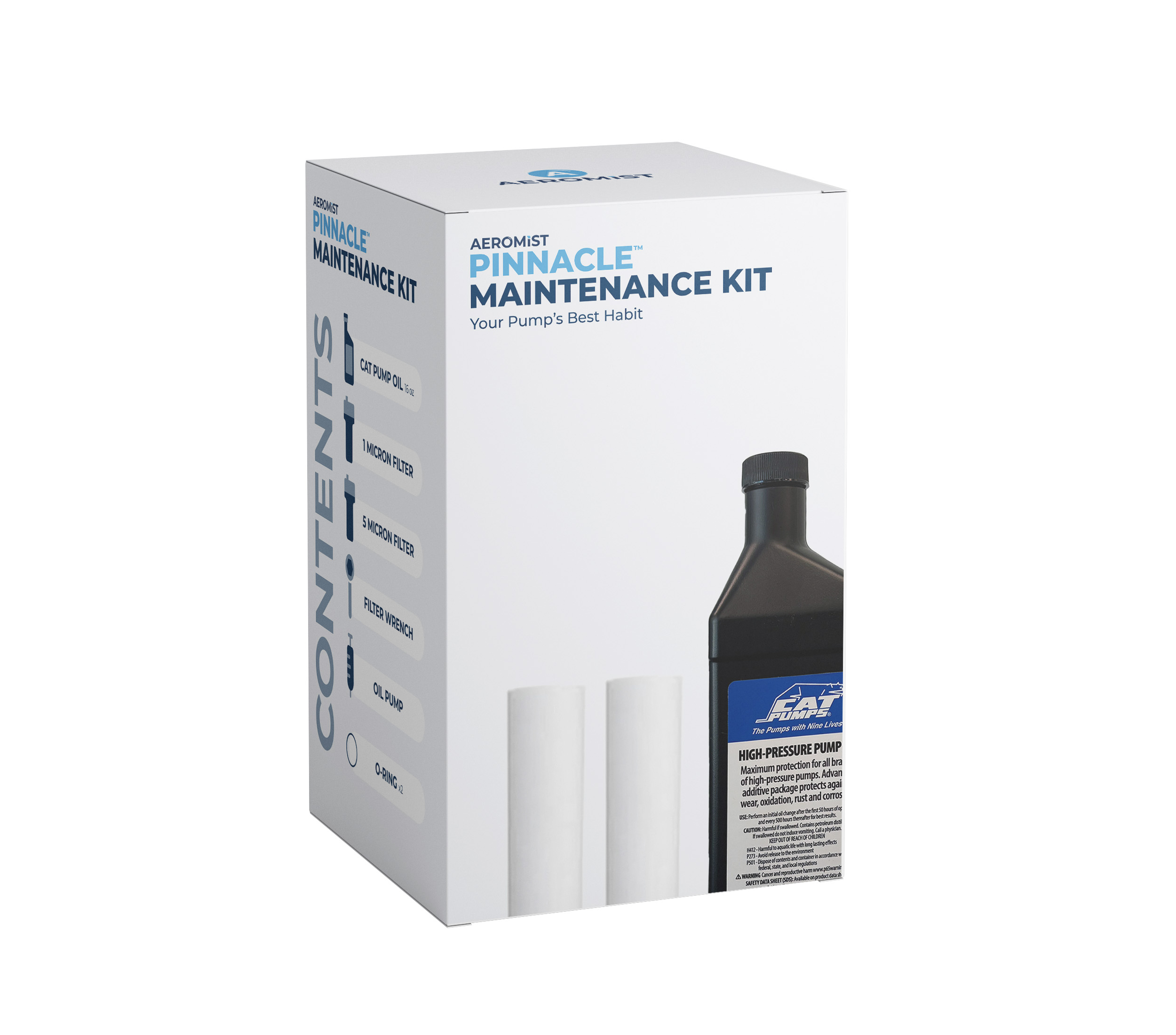 This maintenance kit works for both our open direct drive and enclosed pump units.ย The kit includes a new 5 micron 10″ sediment filter, 1 micron 10″ sediment filter and a 21oz bottle of pump oil. We recommend to change the filter element each year and change the oil in the pump after 500 hours of use or every other year which ever comes first.